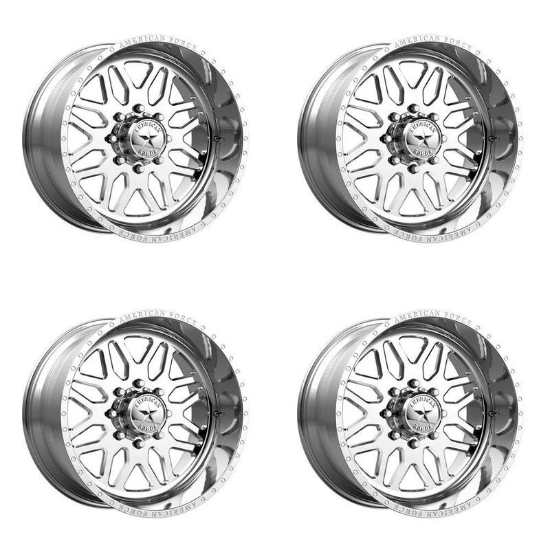 4x American Force 22x10 AFW 76 Blade SS Wheels Polished 8x6.5 / 8x165.1 PCD -25mm Offset 4.52"BS