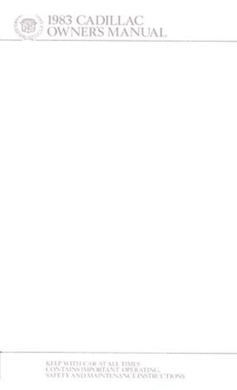 Cadillac Deville 1983 Maintenance/Owners Manual Book