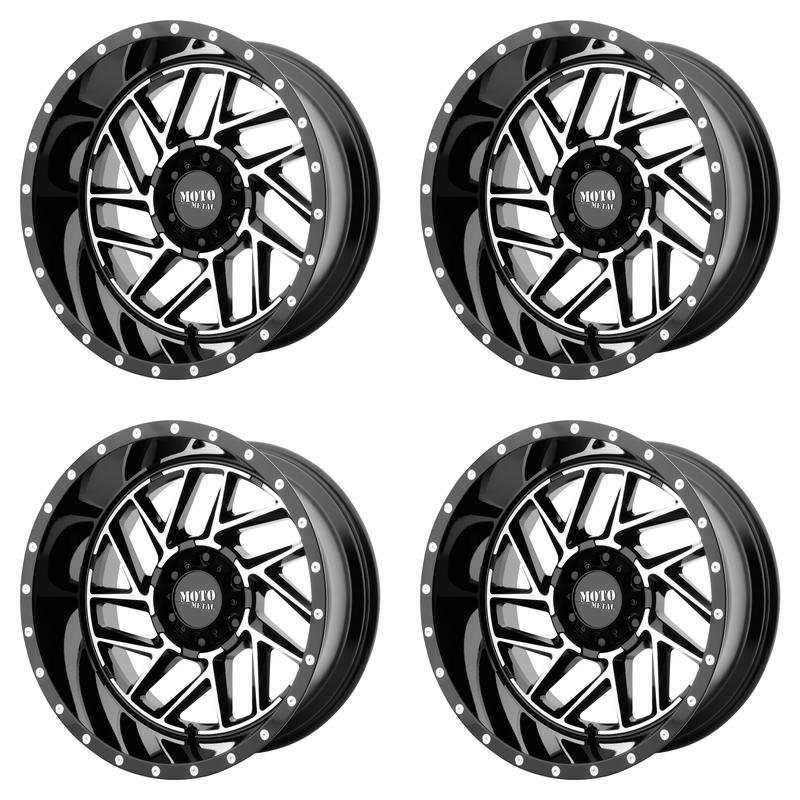 4x Moto Metal 20x10 MO806 Wheels Gloss Black Milled 5x5 / 5x127 PCD -18mm Offset 4.79"BS