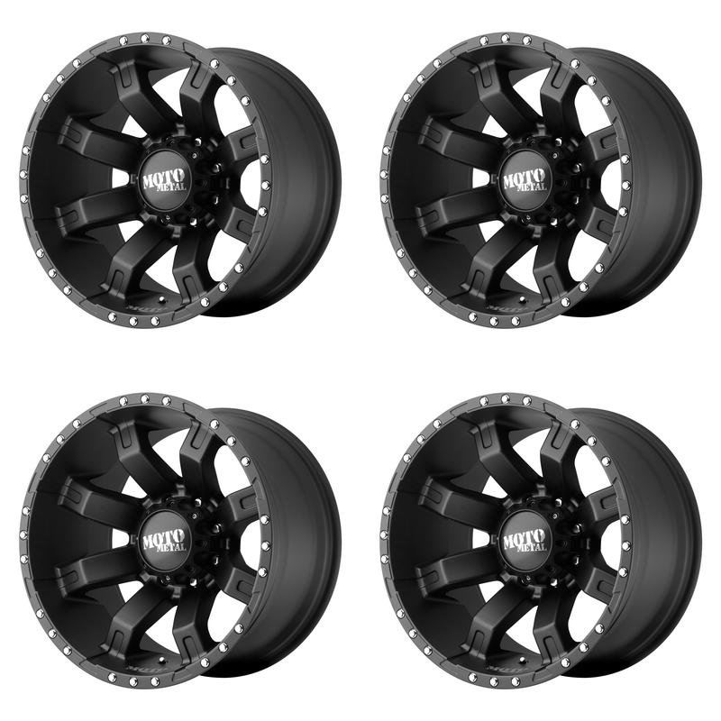 4x Moto Metal 17x9 MO970 Wheels Gloss Black 8x6.5 8x165.1 PCD -12mm Offset 4.53"BS